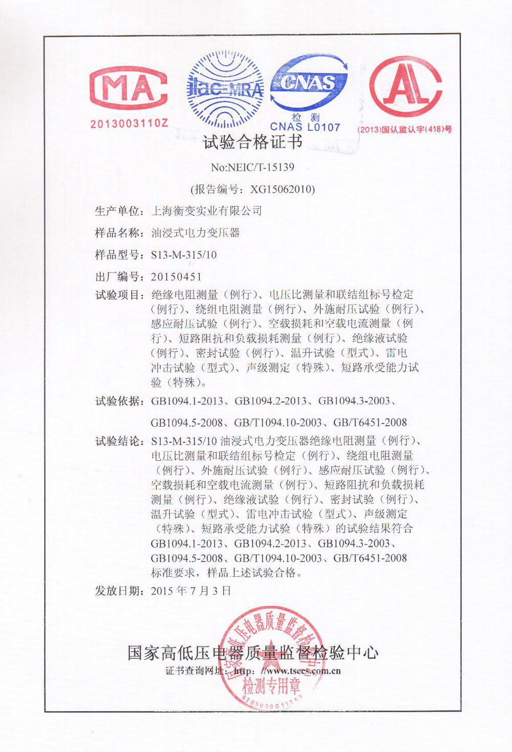 S13-M-315/10油浸式电力变压器
