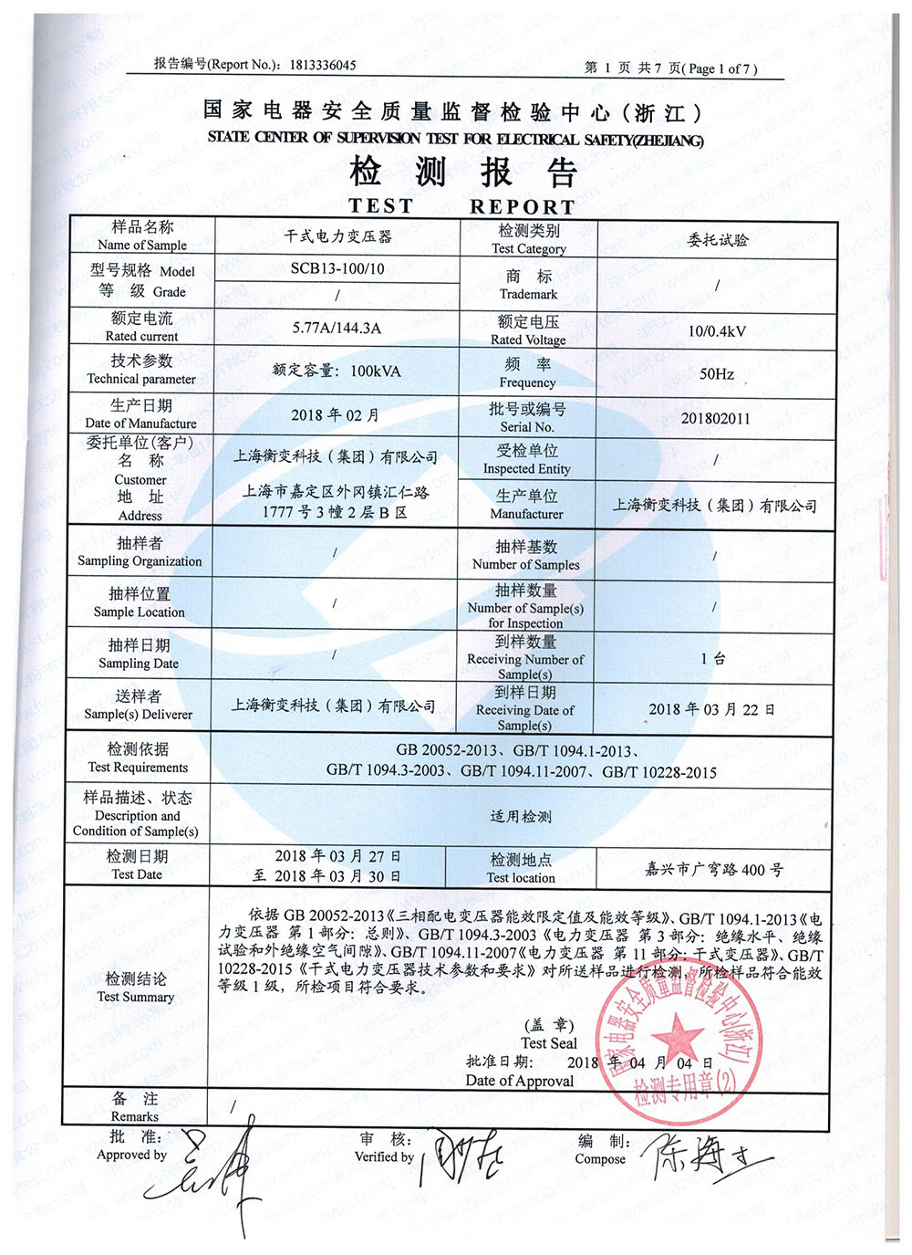SCB13-100/10干式电力变压器