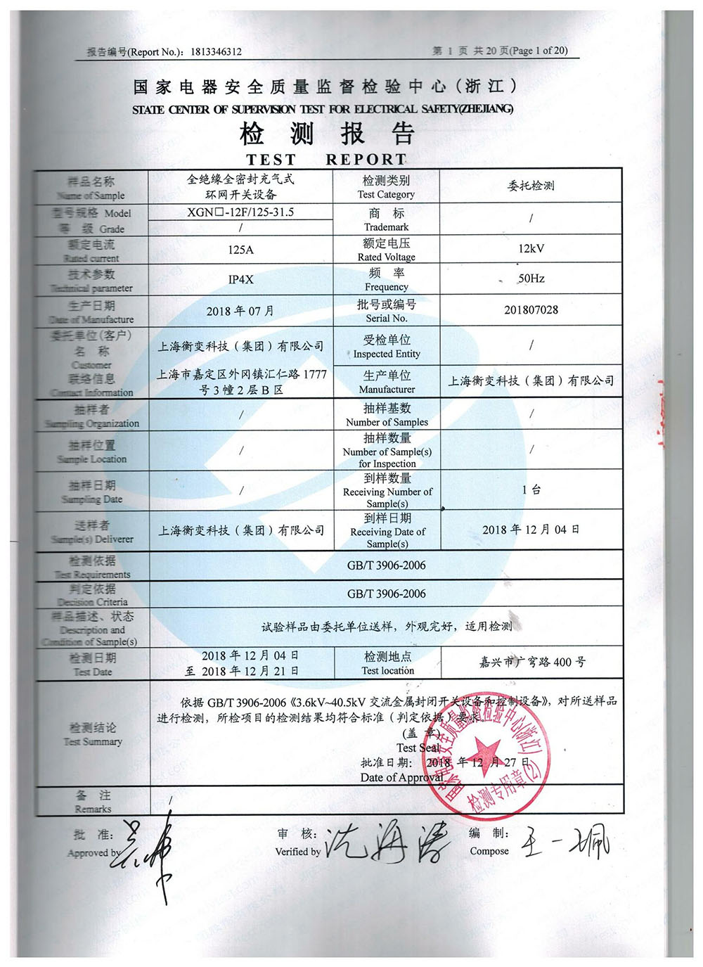 XGN口-12F/125-31.5全绝缘全密封充气式环网开关设备