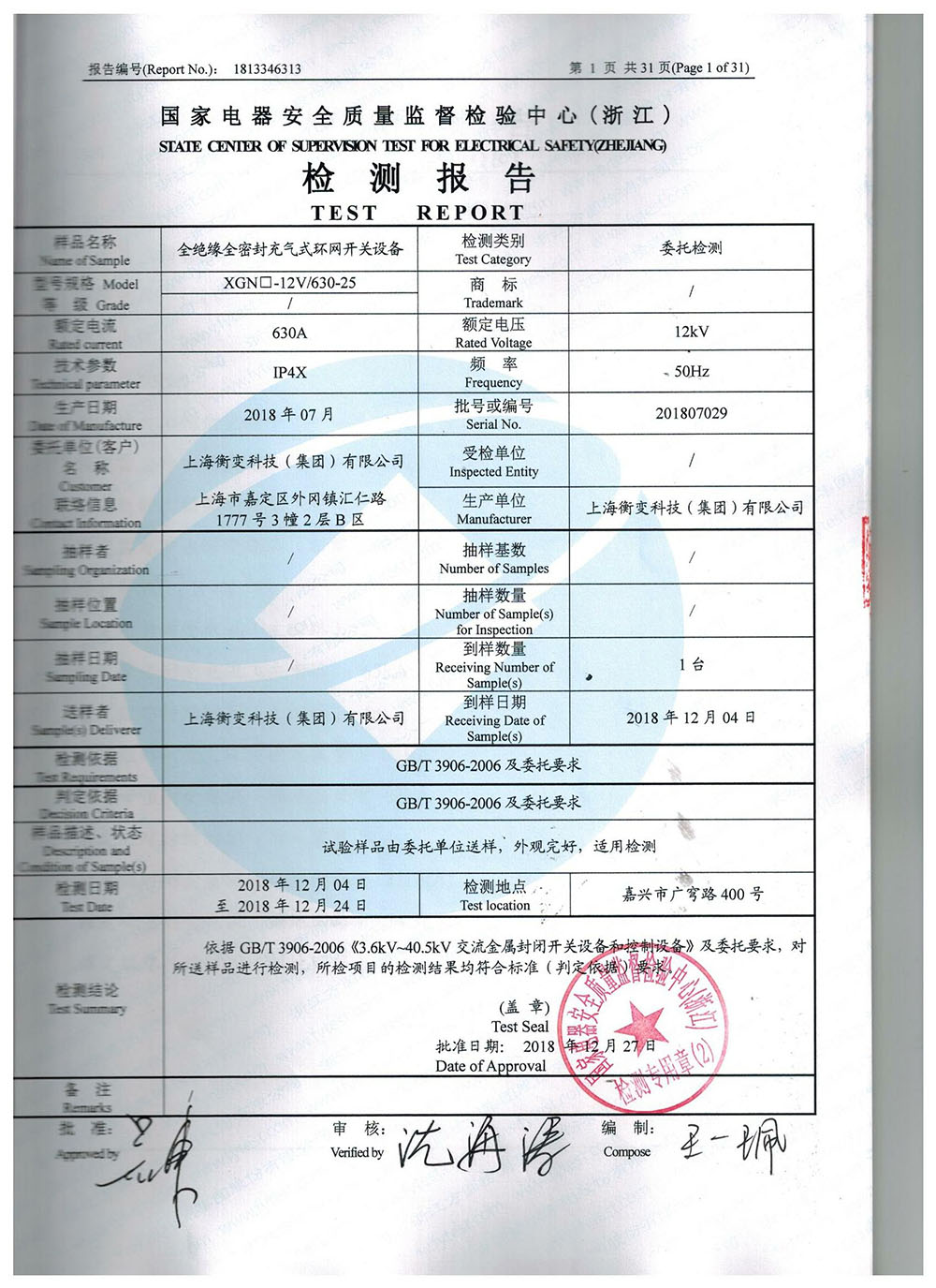 XGN口-12V/630-25全绝缘全密封充气式环网开关设备