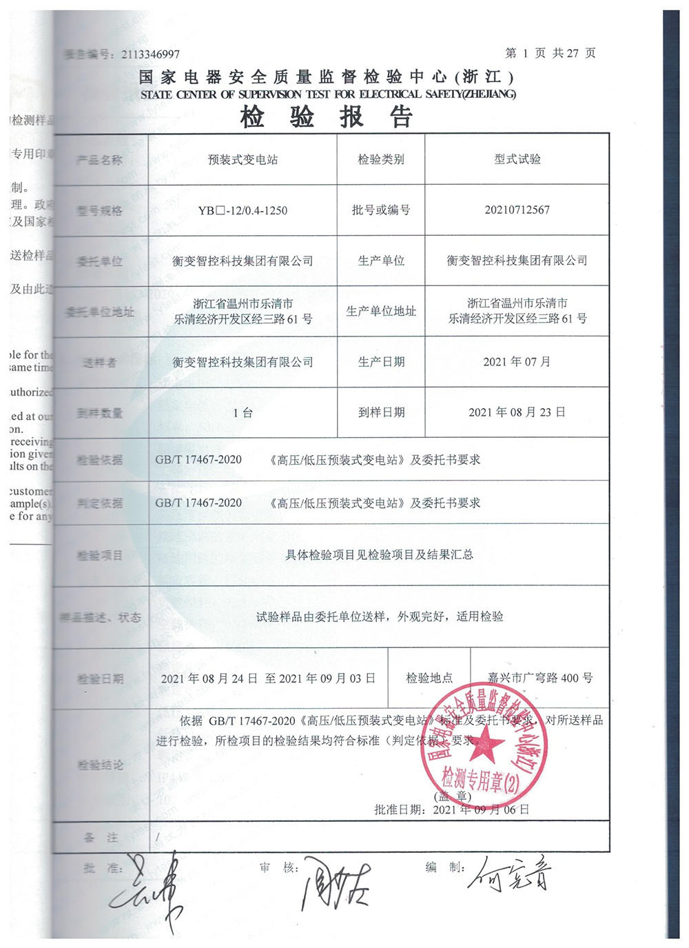 YB口-12/0.4-1250预装式变电站